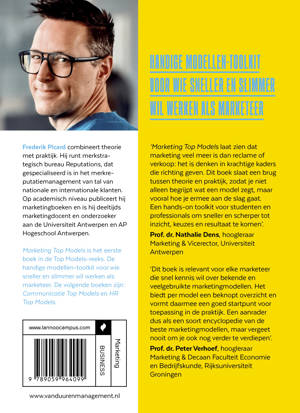 'Marketing Top Models laat zien dat marketing veel meer is dan reclame of verkoop: het is denken in krachtige kaders die richting geven. Dit boek slaat een brug tussen theorie en praktijk, zodat je niet alleen begrijpt wat een model zegt, maar vooral hoe je ermee aan de slag gaat. Een hands-on toolkit voor studenten en professionals om sneller en scherper tot inzicht, keuzes en resultaat te komen.'