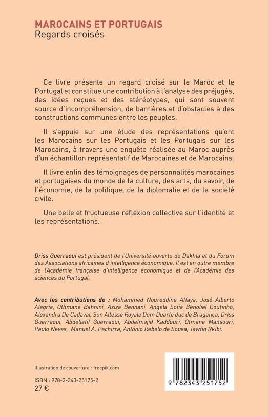 Ce livre présente un regard croisé sur le Maroc et le Portugal et constitue une contribution à l'analyse des préjugés, des idées reçues et des stéréotypes, qui sont souvent source d'incompréhension, de barrières et d'obstacles à des constructions communes entre les peuples. Il s'appuie sur une étude des représentations qu'ont les Marocains sur les Portugais et les Portugais sur les Marocains, à travers une enquête réalisée au Maroc auprès d'un échantillon représentatif de Marocaines et de Marocains. Il livre enfin des témoignages de personnalités marocaines et portugaises du monde de la culture, des arts, du savoir, de l'économie, de la politique, de la diplomatie et de la société civile. Une belle et fructueuse réflexion collective sur l'identité et les représentations.