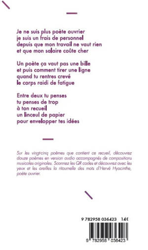Des textes sur notre époque sans fard ni métaphore. Les mots d'un poète ouvrier, la musique pour les porter. La désillusion, l'espérance, la promesse d'un moment où se mêlent fragilité humaine et fraternité.