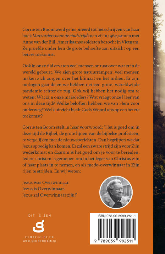 Corrie ten Boom stelt in haar voorwoord: ‘Het is goed om in deze tijd de Bijbel, de grote lijnen van de bijbelse profetieën, te vergelijken met de nieuwsberichten. Dan begrijpen we dat Jezus spoedig kan komen. Er zal een zware strijd zijn voor Zijn wederkomst en daarom is het goed om je voor te bereiden. Iedere christen is geroepen om in het leger van Christus zijn of haar plaats in te nemen, en als mede-overwinnaar in Zijn rijen te strijden. En wij weten: