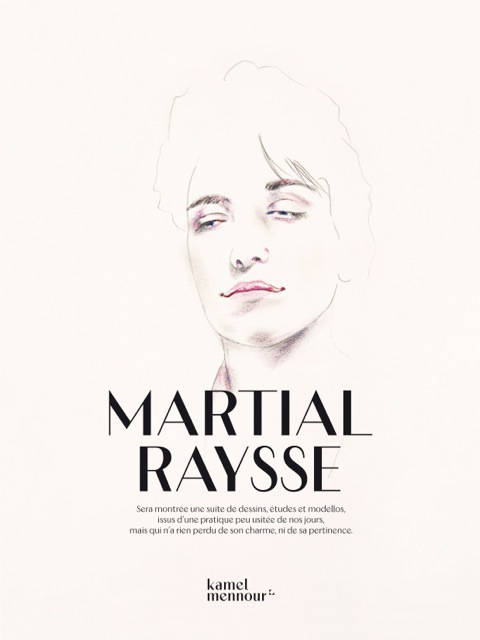 Pour commencer, chez Martial Raysse, il y a toujours des femmes, sans doute le premier de ses sujets. Rebecca (1996) rappelle la Joconde, mais on pourrait aussi l'avoir croisée hier dans le métro ; son portrait est entouré de longs coups de pinceau bruns et pourpre à la gouache : c'est la palette du peintre et la plus élégante des robes dans laquelle elle se drape. Alors on croit surprendre l'artiste au travail, comme lorsqu'on voit la succession de certaines variations : La Charmante Nad, dessinée au fusain, qui réapparaît dans Nad (2000) vêtue de rouge et entourée de fleurs des champs. Quelques minutes ou quelques jours se sont-ils écoulés entre ces deux images ? Les dessins de Martial Raysse disent beaucoup de sa pratique. Tout est permis, tous les pinceaux, tous les crayons, tous les papiers et les collages, même les photocopies, toutes les pirouettes et les acrobaties. Ce qui surprend le plus quand on voit pour la première fois les grandes compositions qu'il a réalisées dans les années 1960, c'est leur relief, les branches en plastiques d'un cerf, les fausses plantes vertes, les morceaux de plages et de paysages en contreplaqué. Or ses dessins sont aussi très souvent en trois dimensions, comme ces petits collages dans lesquels des têtes de jeunes filles sont découpées et fixées sur des bustes un peu trop petits, par exemple les études pour La Source (1990). Il y a aussi des maillots de bain qui sont collés sur des corps de mannequins, comme dans les jeux de découpages pour petites filles. Toujours porteurs de fantaisie, ces collages indiquent les étapes d'un travail précis et de ses ajustements ; il arrive aussi qu'ils soient un peu des blagues – ou bien pas tout à fait ? – comme l'enfant du tableau de Bronzino transformé en prince par une couronne en fleurs de lys ajoutée sur sa tête dans Place d'Assas à Tolède (1993).