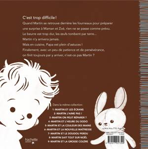 Pendant que Papa est occupé, Martin veut faire un gâteau comme un grand. Mais voilà, casser des œufs, c’est vraiment difficile. Plusieurs échecs, et l’envie d’abandonner pointe le bout de son nez… Mais quand on s’exerce et qu’on recommence, tout finit par fonctionner petit à petit.