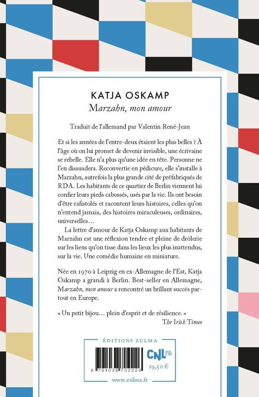 Et si les années de l'entre-deux étaient les plus belles ? À l'âge où on lui promet de devenir invisible, une écrivaine se rebelle. Elle n'a plus qu'une idée en tête. Personne ne l'en dissuadera. Reconvertie en pédicure, elle s'installe à Marzahn, autrefois la plus grande cité de préfabriqués de RDA. Les habitants de ce quartier de Berlin viennent lui confier leurs pieds cabossés, usés par la vie. Ils ont besoin d'être rafistolés et racontent leurs histoires, celles qu'on n'entend jamais, des histoires miraculeuses, ordinaires, universelles...