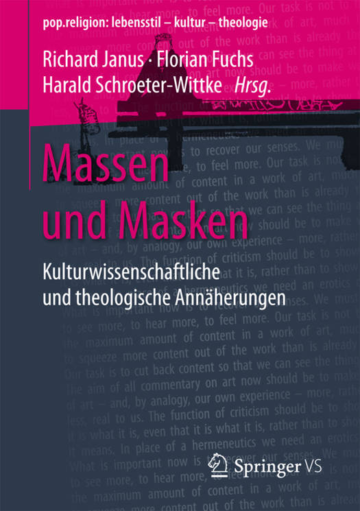 Unter dem Stichwort Massen und Masken werden zwei Phänomene aus kulturwissenschaftlicher und theologischer Perspektive beleuchtet, die komplementär sind. Viele Bereiche des menschlichen Lebens werden von Massenkultur geprägt. Zu einer entsprechenden Eventkultur gehören die vielen Festivals, aber auch der Kirchentag. Massenevents werden in Szene gesetzt und medial verbreitet. Mit Blick auf die Massenveranstaltungen des Nationalsozialismus erweisen sie sich als ambivalent. Das Subjekt ist nicht nur Individuum, sondern auch Teil einer größeren Menge, die es ihm ermöglicht, Erfahrungen von Ekstase zu machen. Karneval ist eine bestimmte Form der heutigen Massenkultur, die ihre eigenen Traditionen mit sich trägt. Karneval inszeniert sich selbst und die Menschen, die daran teilnehmen. Die Verkleidung, die Musik, die Umzüge spielen eine Rolle. Zugleich fordert der Karneval mit seinem überschießenden Charakter heraus. Grenzverletzungen gehören stets dazu und finden in der Verletzung religiöserGefühle einen neuralgischen Punkt. Aber auch vestimäre und philosophische Fragestellungen bleiben nicht aus.