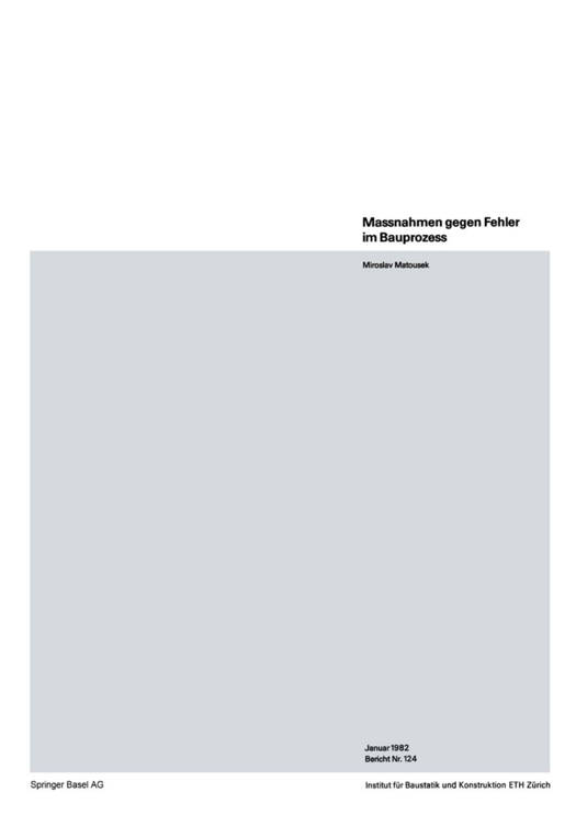 Bauwerke werden sicherheitstechnisch immer fur bereitzustellen, war das Ziel der vorlie- anspruchsvoller und die bautechnischen und genden Arbeit. verfahrenstechnischen Moglichkeiten des Bau- wesens immer grosser. Der traditionelle, weit- Der Bericht geht von einer ebenfallR an unse- gehend auf Erfahrung beruhende Sicherheits- rem Institut durchgefuhrten Analyse von 800 begriff der Bautechnik ist angesichts dieser Bau lerksschaden aus und beschreibt in einer Entwicklung in Frage gestellt. Auch die in zweckmassigen Systematik mogliche Fehler- den letzten Jahren auftretenden Bauwerks- quellen und schlagt geeignete Abwehrmassnah- schaden bestatigen die Notwendigkeit, die men vor. Diese konnen im konkreten Einzelfall Sicherheitsprobleme des Bauwesens mit wissen- direkt angewendet werden. Bei der Definition schaftlichen Methoden von einer allgemeinen ubergeordneter Sicherheits-Strategien werden Basis aus neu anzugehen. Diese Erkenntnis die dargelegten Gedankengange eine wertvolle fuhrte zur Inangriffnahme entsprechender For- Hilfe sein. Ich hoffe, dass der Bericht in schungsarbeiten in aller Welt und auch in der der Baupraxis auf fruchtbaren Boden fallt. Schweiz mit dem Ziel, den bautechnischen Sicherheitsbegriff den in anderen Bereichen Der vorliegende Bericht entstand an unserem der Technik bewahrten Gedankengangen anzu- Institut als Teilergebnis eines finanziell passen und daraus rationale Grundlagen fur von der Kommission zur Forderung der wissen- die Sicherheitstheorie von Bauwerken und Trag- schaftlichen Forschung beim Eidg. Volkswirt- werken herzuleiten. schaftsdepartement getragenen, umfassenderen Forschungsprojektes. Fur diese Forderung sei Die Ergebnisse solcher Arbeiten zeigen, dass der Kommission auch hier der beste Dank aus- der Mensch und das menschliche Verhalten im gesprochen.