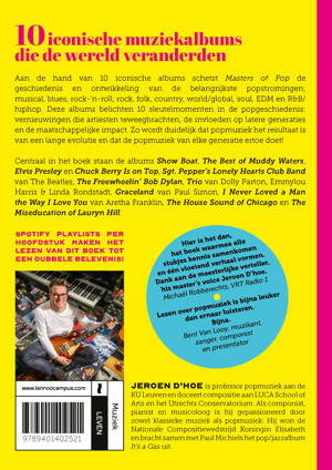Aan de hand van 10 iconische albums schetst Masters of Pop de geschiedenis en ontwikkeling van de belangrijkste popstromingen; musical, blues, rock-'n-roll, rock, folk, country, world/global, soul, EDM en R&B/hiphop. Deze albums belichten 10 sleutelmomenten in de popgeschiedenis: vernieuwingen die artiesten teweegbrachten, de invloeden op latere generaties en de maatschappelijke impact. Zo wordt duidelijk dat popmuziek het resultaat is van een lange evolutie en dat de popmuziek van elke generatie ertoe doet!