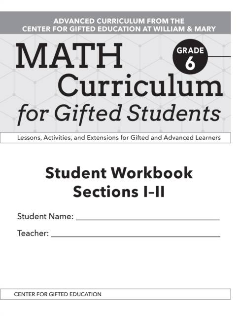 The Math Curriculum for Gifted Students series provides gifted and advanced learners with challenging activities to extend their mathematical thinking. Developed by the Center for Gifted Education at William & Mary, the lessons, activities, and extensions in each book are aligned to national standards and are designed to provide high-ability learners advancement beyond the general curriculum.