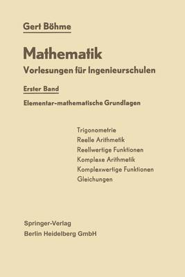 1 Arithmetik reeller Zahlen.- 2 Ebene Trigonometrie.- 3 Funktionen einer reellen Veränderlichen.- 4 Arithmetik komplexer Zahlen.- 5 Komplexe Funktionen einer reellen Veränderlichen.- 6 Gleichungen. Lineare Systeme.- Namen- und Sachverzeichnis.