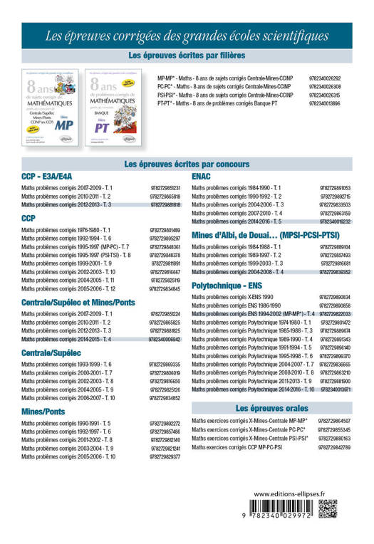 exercices corrigés posés à l'oral des concours de Centrale-Supélec, Mines-Ponts