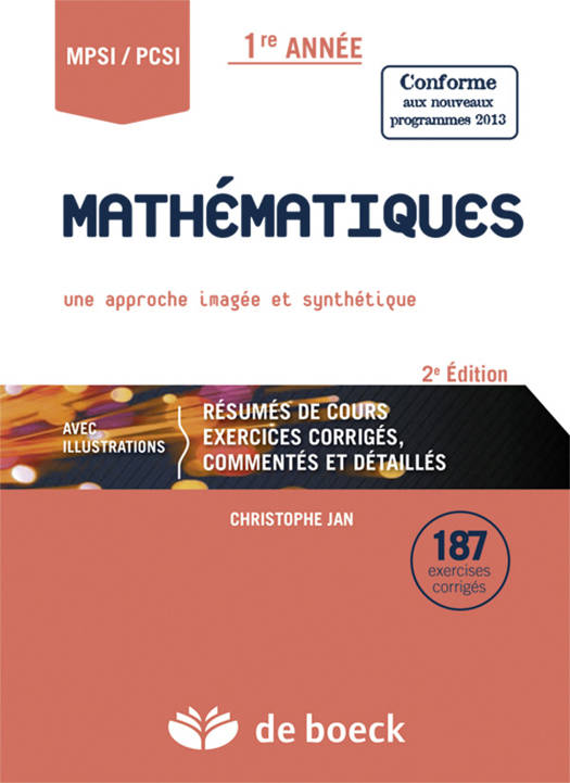 Cet ouvrage, conforme aux nouveaux programmes en vigueur en classes de MPSI et PCSI à partir de Septembre 2013, est destiné aux élèves de CPGE Scientifiques de première année. Il permet de revisiter le cours de Mathématiques de façon imagée.