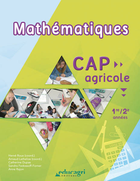 S’inscrivant dans le cadre du module MG1 « Agir dans des situations de la vie sociale », ce manuel a pour objectif de développer la capacité des élèves à utiliser des outils mathématiques pour les réinvestir dans des situations concrètes durant les deux années de CAP agricole.Les quatre premières parties permettent d’aborder l’ensemble des notions conformément au référentiel et aux préconisations développées dans le document d’accompagnement du référentiel. Pour chaque chapitre sont rappelés les objectifs à atteindre et un historique illustré permet de situer les notions développées.Introduites par des activités s’appuyant sur des situations concrètes de la vie courante ou professionnelle, les notions de cours sont volontairement réduites pour en favoriser la mémorisation. L’exercice résolu et l’autoévaluation systématiquement proposés permettent ensuite aux élèves de travailler en autonomie et de s’assurer de la compréhension directe des notions essentielles. Les exercices d’application sont nombreux et certains, identifiés par un pictogramme, font appel à des notions complémentaires plus en rapport avec la poursuite d’études en bac professionnel. Enfin, des exemples d’usage des TICE (calculatrice, tableur, logiciel de géométrie dynamique) correspondant aux notions développées sont détaillés dans des fiches spécifiques en fin de chapitre.Une cinquième partie entièrement consacrée à des activités pluridisciplinaires termine l’ouvrage et en fait toute son originalité. Ce manuel est complété par un cahier d’exercices qui permet aux élèves de mettre en application les notions essentielles et de s’entraîner à l’examen.
