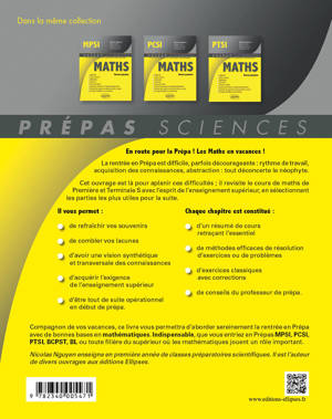 Compagnon de vos vacances, ce livre vous permettra d’aborder sereinement la rentrée en Prépa avec de bonnes bases en mathématiques. Indispensable, que vous entriez en Prépas MPSI, PCSI, PTSI, BCPST, BL ou toute filière du supérieur où les mathématiques jouent un rôle important.