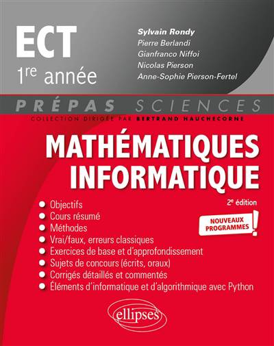 Cet ouvrage a pour objectifs de permettre aux étudiants en ECT 1re année de réviser leur cours de Mathématiques et de l'assimiler par la mise en application des notions. Dans chaque chapitre, correspondant à peu près à une semaine de cours, le lecteur trouvera notamment :