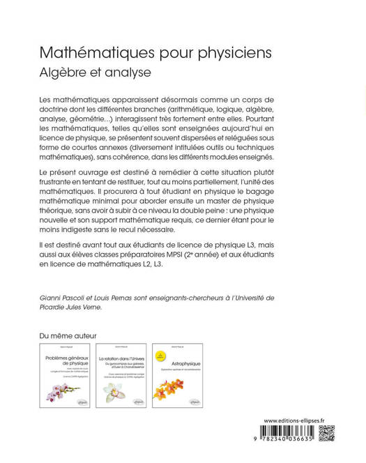 Cet ouvrage est destiné procurera à tout étudiant en physique le bagage mathématique minimal pour aborder ensuite un master de physique théorique.