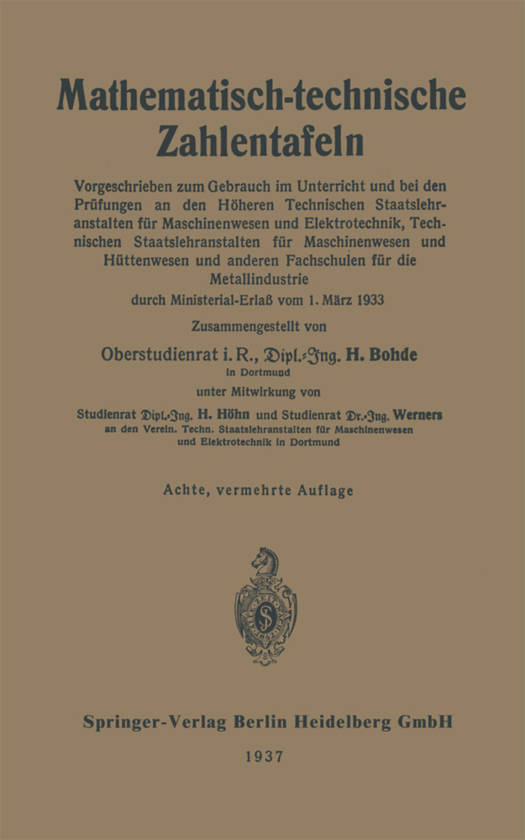 Vorgeschrieben Zum Gebrauch Im Unterricht Und Bei Den Prüfungen an Den Höheren Technischen Staatslehranstalten Für Maschinenwesen Und Elektrotechnik, Technischen Staatslehranstalten Für Maschinenwesen Und Hüttenwesen Und Anderen Fachschulen Für Die Metalli