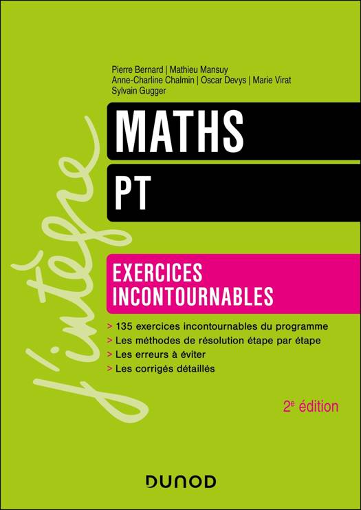 Vous avez besoin d’accompagnement pour appliquer votre cours de mathématiques du programme de PT ? Vous voulez être à l’aise face à tout exercice ? La clef de la réussite est de bien maîtriser les exercicesincontournables du programme. Cet ouvrage vous fait découvrir ces exercices et vous dévoile leurs méthodes de résolution. Pour chaque exercice, vous trouverez : • La méthode de résolution expliquée et commentée étape par étape. • Le corrigé détaillé rédigé. • Les astuces à retenir et les pièges à éviter.