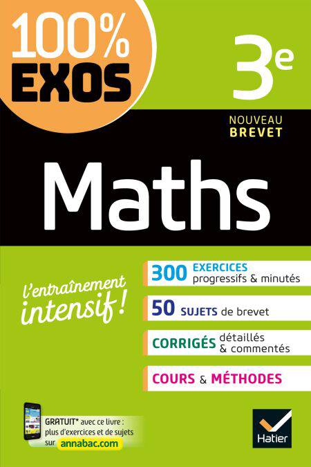 • Vous êtes en Troisième et vous souhaitez réussir en maths ? Sur chaque thème du programme, 100 % exos Maths 3e met à votre disposition toutes les ressources pour un entraînement sur mesure : – les rappels de cours et de méthode indispensables, – une batterie d’exercices progressifs et minutés, – des contrôles et des sujets de brevet, pour réviser et gagner des points, – des exercices d’approfondissement pour devenir très bon et développer vos capacités, – des corrigés détaillés et commentés, pour assimiler les bons réflexes.