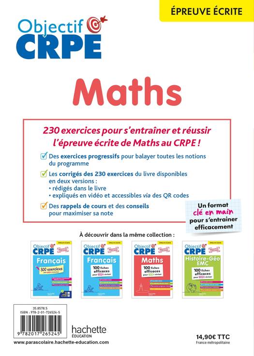 230 exercices pour s’entraîner et réussir l’épreuve écrite de Mathématiques au CRPE M2/L3