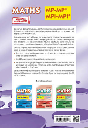 Ce manuel de Mathématiques, conforme aux nouveaux programmes, est écrit à l’intention des étudiants des classes préparatoires de seconde année des filières MP/MP* et MPI/MPI*.
