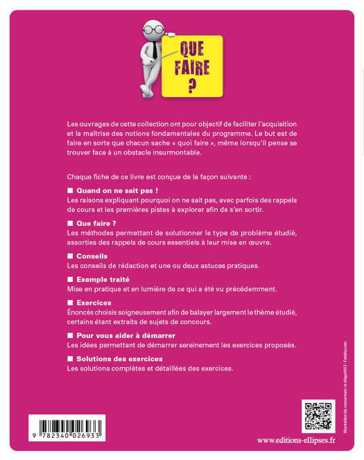 Les ouvrages de cette collection ont pour objectif de faciliter l’acquisition et la maîtrise des notions fondamentales du programme. Le but est de faire en sorte que chacun sache « quoi faire », même lorsqu’il pense se trouver face à un obstacle insurmontable.
