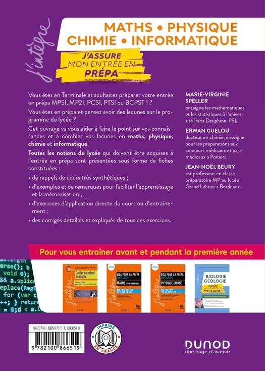 Toutes les notions du lycée qui doivent être acquises à l’entrée en prépa sont présentées sous forme de 103 fiches constituées :