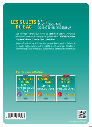 Cet ouvrage permettra aux étudiants de Terminale S-SI de s’entrainer aux trois épreuves à plus fort coefficient au Baccalauréat : Mathématiques, Physique-Chimie et Sciences de l’ingénieur. Pour chaque matière, l’élève trouvera :