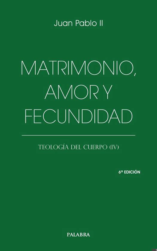 Catequesis de Juan Pablo II en la que se profundiza en la teología del amor humano, la redención del cuerpo y la sacramentalidad del matrimonio.El Papa Juan Pablo II ha dedicado su catequesis de las audiencias generales durante más de cinco años a profundizar en la teología del amor humano, la redención del cuerpo y la sacramentalidad del matrimonio. Este volumen recoge los dos ciclos finales, en los que Juan Pablo II reflexiona sobre los fundamentos antropológicos y bíblico-teológicos en los que se encuentran las respuestas a los interrogantes perennes que han formulado los hombres y mujeres de todos los tiempos y, especialmente, de nuestro mundo contemporáneo sobre el matrimonio y la procreación. En la última parte del libro, dedica una gran atención a la encíclica "Humanae vitae", de su predecesor Pablo VI.