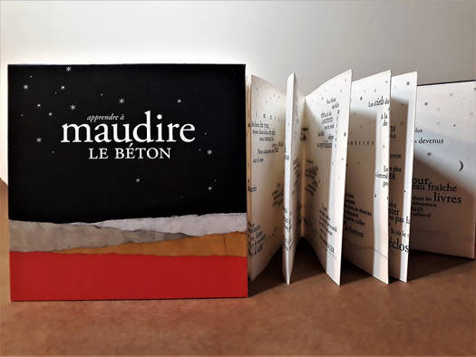 Déplier le leporello, c’est pouvoir saisir le recueil au premier regard dans son tout avant même de le parcourir. On conseillera au lecteur la plus grande dispersion à travers le livre, qu’il s’abandonne au désert, et se fie, tel un chasseur-cueilleur, à une lecture intuitive.