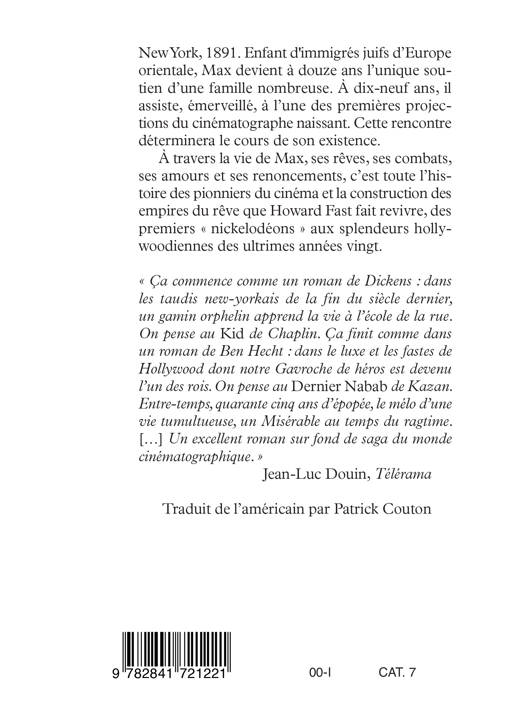 À travers la vie de Max, ses rêves, ses combats, ses amours et ses renoncements, c’est toute l’histoire des pionniers du cinéma et la construction des empires du rêve que Howard Fast fait revivre, des premiers « nickelodéons » aux splendeurs hollywoodiennes des ultrimes années vingt.