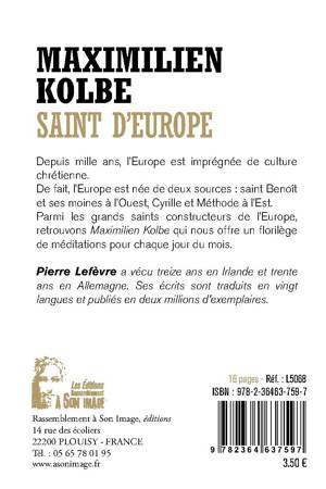 Maximilien Kolbe Saint d'Europe Depuis mille ans, l'Europe est imprégnée de culture chrétienne. De fait, l'Europe est née de deux sources : saint Benoît et ses moines à l'Ouest, Cyrille et Méthode à l'Est. Parmi les grands saints constructeurs de l'Europe, retrouvons Maximilien Kolbe qui nous offre un florilège de méditations pour chaque jour du mois.