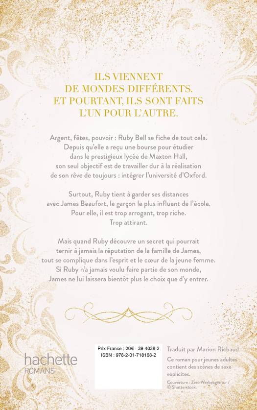 Argent, fêtes, pouvoir  : Ruby Bell se fiche de tout cela. Depuis qu'elle a reçu une bourse pour étudier dans le prestigieux lycée de Maxton Hall, son seul objectif est de travailler dur à la réalisation de son rêve de toujours : intégrer l’université d’Oxford.