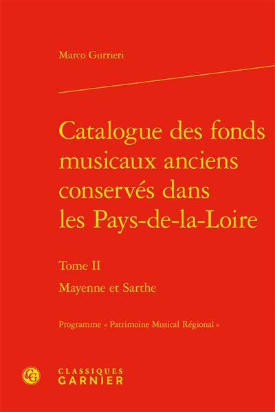 Dans le cadre du programme Patrimoine musical régional, ce catalogue répertorie de manière exhaustive le patrimoine musical, de la Renaissance à la première moitié du XIXe siècle, conservé en Mayenne et dans la Sarthe.