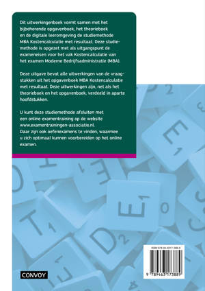 Dit uitwerkingenboek vormt samen met het bijbehorende opgavenboek, het theorieboek en de digitale leeromgeving de studiemethode MBA Kostencalculatie met resultaat. Deze studiemethode is opgezet met als uitgangspunt de exameneisen voor het vak Kostencalculatie van het examen Moderne Bedrijfsadministratie (MBA).