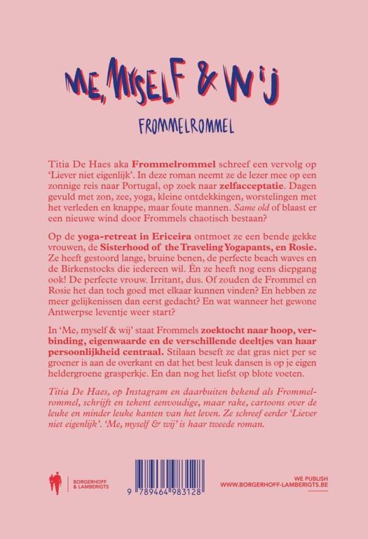 Op de yoga-retreat in Ericeira ontmoet ze een bende gekke vrouwen, de Sisterhood of the Traveling Yogapants, en Rosie. Ze heeft gestoord lange, bruine benen, de perfecte beach waves en de Birkenstocks die iedereen wil. Én ze heeft nog eens diepgang ook! De perfecte vrouw. Irritant, dus. Of zouden de Frommel en Rosie het dan toch goed met elkaar kunnen vinden? En hebben ze meer gelijkenissen dan eerst gedacht? En wat wanneer het gewone Antwerpse leventje weer start?