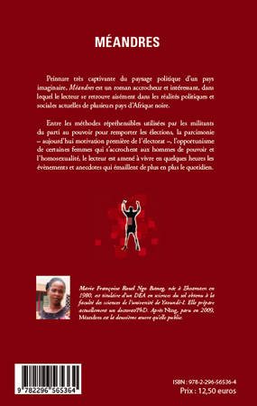 Peinture très captivante du paysage politique d'un pays imaginaire, Méandres est un roman dans lequel le lecteur retrouve aisément les réalités politiques et sociales actuelles de plusieurs pays d'Afrique Noire. Sont évoqués entre autres les méthodes répréhensibles utilisées par les militants d'un parti au pouvoir, l'opportunisme de certaines femmes qui s'accrochent aux hommes de pouvoir et l'homosexualité.