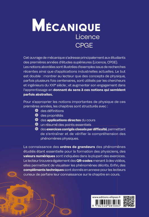 Cet ouvrage de mécanique s’adresse principalement aux étudiants des premières années d’études supérieures (Licence, CPGE).