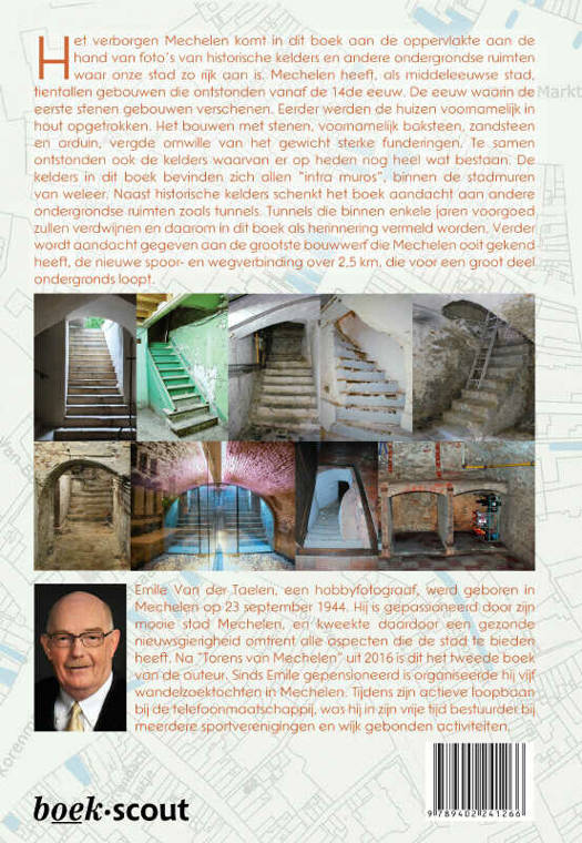 Het verborgen Mechelen komt in dit boek aan de oppervlakte aan de hand van foto’s van historische kelders en andere ondergrondse ruimten waar onze stad zo rijk aan is. Mechelen heeft, als middeleeuwse stad, tientallen gebouwen die ontstonden vanaf de 14de eeuw. De eeuw waarin de eerste stenen gebouwen verschenen. Eerder werden de huizen voornamelijk in hout opgetrokken. Het bouwen met stenen, voornamelijk baksteen, zandsteen en arduin, vergde omwille van het gewicht sterke funderingen. Te samen ontstonden ook de kelders waarvan er op heden nog heel wat bestaan. De kelders in dit boek bevinden zich allen “intra muros”, binnen de stadmuren van weleer. Naast historische kelders schenkt het boek aandacht aan andere ondergrondse ruimten zoals tunnels. Tunnels die binnen enkele jaren voorgoed zullen verdwijnen en daarom in dit boek als herinnering vermeld worden. Verder wordt aandacht gegeven aan de grootste bouwwerf die Mechelen ooit gekend heeft, de nieuwe spoor- en wegverbinding over 2,5 km, die voor een groot deel ondergronds loopt.