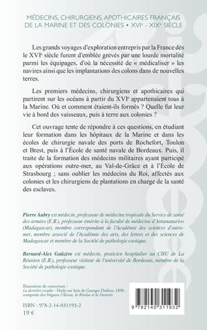 Les grands voyages d'exploration entrepris par la France dès le XVIe siècle furent d'emblée grevés par une lourde mortalité parmi les équipages, d'où la nécessité de « médicaliser » les navires ainsi que les implantations des colons dans de nouvelles terres. Les premiers médecins, chirurgiens et apothicaires qui partirent sur les océans à partir du XVIe appartenaient tous à la Marine. Où et comment étaient-ils formés ? Quelle fut leur vie à bord des vaisseaux, puis à terre aux colonies ? Cet ouvrage tente de répondre à ces questions, en étudiant leur formation dans les hôpitaux de la Marine et dans les écoles de chirurgie navale des ports de Rochefort, Toulon et Brest, puis à l'École de santé navale de Bordeaux. Puis, il traite de la formation des médecins militaires ayant participé aux opérations outre-mer, au Val-de-Grâce et à l'École de Strasbourg ; sans oublier les médecins du Roi, affectés aux colonies et les chirurgiens de plantations en charge de la santé des esclaves.