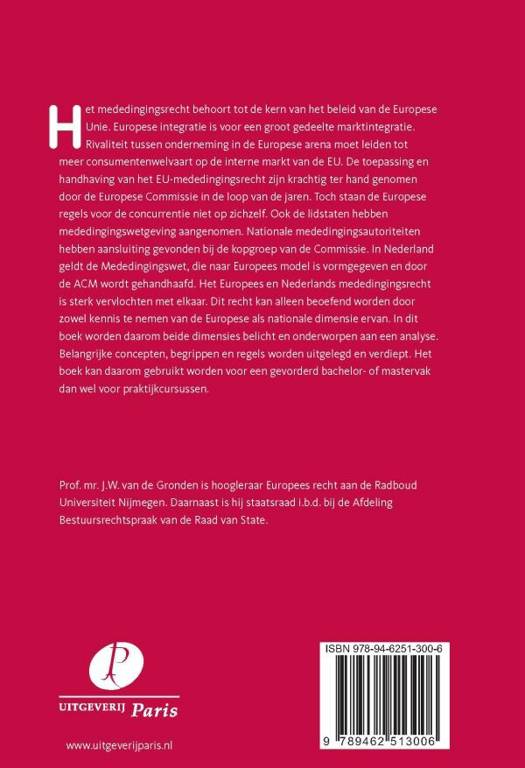 Het mededingingsrecht behoort tot de kern van het beleid van de Europese Unie. Europese integratie is voor een groot gedeelte marktintegratie. Rivaliteit tussen onderneming in de Europese arena moet leiden tot meer consumentenwelvaart op de interne markt van de EU. De toepassing en handhaving van het EU-mededingingsrecht zijn krachtig ter hand genomen door de Europese Commissie in de loop van de jaren. Toch staan de Europese regels voor de concurrentie niet op zichzelf. Ook de lidstaten hebben mededingingswetgeving aangenomen. Nationale mededingingsautoriteiten hebben aansluiting gevonden bij de kopgroep van de Commissie. In Nederland geldt de Mededingingswet, die naar Europees model is vormgegeven en door de ACM wordt gehandhaafd. Het Europees en Nederlands mededingingsrecht is sterk vervlochten met elkaar. Dit recht kan alleen beoefend worden door zowel kennis te nemen van de Europese als nationale dimensie ervan. In dit boek worden daarom beide dimensies belicht en onderworpen aan een analyse. Belangrijke concepten, begrippen en regels worden uitgelegd en verdiept. Het boek kan daarom gebruikt worden voor een gevorderd bachelor- of mastervak dan wel voor praktijkcursussen.