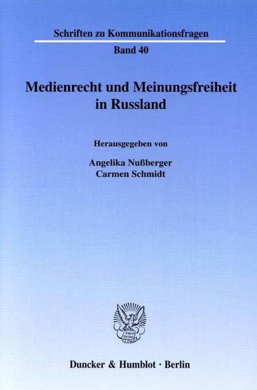 Die moderne Mediengesellschaft macht vor Staatsgrenzen keinen Halt, auch wenn es sich um so unterschiedliche politische Systeme wie gegenwärtig in Russland, Weißrussland und in den EU-Mitgliedsstaaten handelt. Eine besondere Brisanz im Medienbereich hat in den vergangenen Jahren der internationale Terrorismus erlangt, da im Kampf gegen terroristische Akte auch Beschränkungen der Kommunikationsfreiheiten als nötig angesehen werden. Mit dem vorliegenden Band wird der Bogen von den völkerrechtlichen und europäischen Grundlagen bis zum nationalen Medienrecht gespannt und dabei den Reaktionen des Gesetzgebers auf die neuen Herausforderungen eine besondere Aufmerksamkeit geschenkt. Die Einzelbeiträge sind sowohl rechtsvergleichende Betrachtungen als auch allgemeine Reflexionen und Stellungnahmen zum tagespolitischen Geschehen. Sie bringen den bei einer Moskauer Medientagung entstandenen offenen Dialog zwischen ost- und westeuropäischen Wissenschaftlern, russischen Journalisten und Behördenvertretern, deren aktualisierte Vorträge die vorliegende Publikation zusammenfasst, zum Ausdruck.