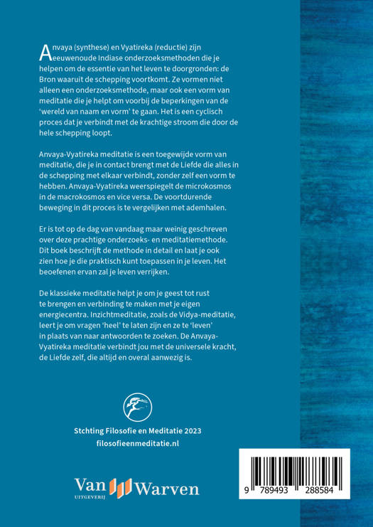 Anvaya (synthese) en Vyatireka (reductie) zijn eeuwenoude Indiase onderzoeksmethoden die je helpen om de essentie van het leven te doorgronden: de Bron waaruit de schepping voortkomt. Ze vormen niet alleen een onderzoeksmethode, maar ook een vorm van meditatie die je helpt om voorbij de beperkingen van de ‘wereld van naam en vorm’ te gaan. Het is een cyclisch proces dat je verbindt met de krachtige stroom die door de hele schepping loopt.