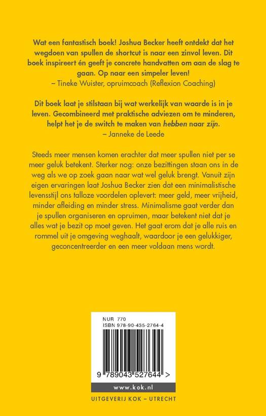 'Meer door minder' is een inspirerend boek van Joshua Becker over het creëren van ruimte in je huis, je leven, je hoofd en je bezit. Becker laat zien dat een minimalistische levensstijl geworteld is in eeuwenoude theorieën en methodes over afstand doen van bezit. Door alle ruis en rommel uit zijn omgeving weg te halen, is Becker een gelukkiger, geconcentreerder en een meer tevreden mens geworden. Het opruimen van alles wat overbodig is geeft letterlijk en figuurlijk ruimte in je leven!