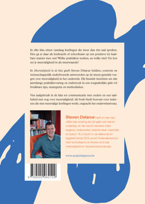 In elke klas zitten vandaag leerlingen die meer dan één taal spreken. Hoe ga je daar als leerkracht of schoolteam op een positieve én haalbare manier mee om? Welke praktijken werken, en welke niet? En hoe zet je meertaligheid in als meerwaarde? In Meertaligheid in de klas geeft Steven Delarue heldere, concrete en wetenschappelijk onderbouwde antwoorden op de meest gestelde vragen over meertaligheid in het onderwijs. Hij bundelt inzichten uit zijn jarenlange praktijkervaring en onderzoek in een toegankelijke gids vol bruikbare tips, strategieën en methodieken. Van taalgebruik in de klas tot communicatie met ouders en een taalbeleid met oog voor meertaligheid: dit boek biedt houvast voor iedereen die met meertalige leerlingen werkt, ongeacht het onderwijsniveau.