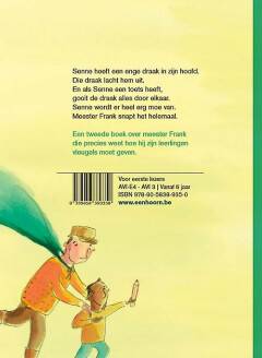 Een tweede boek over de bijzondere meester Frank die precies weet hoe hij zijn leerlingen vleugels moet geven. Gevoelig verhaal over het overwinnen van faalangst. Vanaf 6 jaar (AVI 3 / AVI-E4). Senne heeft een draak in zijn hoofd. Die draak lacht hem uit. En als Senne een toets heeft, gooit de draak alles door elkaar. Senne wordt er heel erg moe en onzeker van. Gelukkig snapt meester Frank het helemaal. Meester Frank wordt ridder Frank en weet het vreselijke monster te verrassen. Hij tovert de draak om in een nieuw dier, met een lieve snuit. Het dier in Sennes hoofd gooit niets meer door elkaar. Nu lukken de toetsen wel!