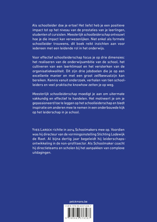 Als schoolleider doe je ertoe! Het liefst heb je een positieve impact tot op het niveau van de prestaties van je leerlingen, studenten of cursisten. Meesterlijk schoolleiderschap ontvouwt hoe je die impact kan verwezenlijken. Niet enkel als formele schoolleider trouwens, dit boek reikt inzichten aan voor iedereen met een leidende rol in het onderwijs.