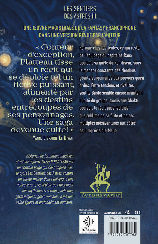 Historien de formation, musicien et rôliste aguerri, Stefan Platteau est un écrivain belge qui s’est imposé avec le cycle Les Sentiers des Astres comme un auteur majeur dont l’univers, d’une richesse rare, se déploie au croisement des mythologies celtiques, indiennes, germaniques et gréco-romaines, dans une veine épique et profondément humaine.