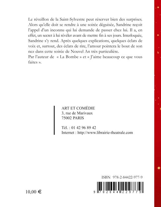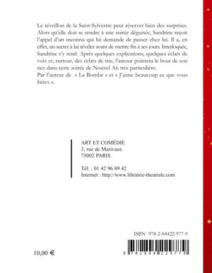 Le réveillon de la Saint-Sylvestre peut réserver bien des surprises. Alors qu'elle doit se rendre à une soirée déguisée, Sandrine reçoit l'appel d'un inconnu qui lui demande de passer chez lui. Il a, en effet, un secret à lui révéler avant de mettre fin à ses jours. Interloquée, Sandrine s'y rend. Après quelques explications, quelques éclats de voix et, surtout, des éclats de rire, l'amour pointera le bout de son nez dans cette soirée de Nouvel An très particulière. Par l'auteur de La Bombe et J'aime beaucoup ce que vous faites .