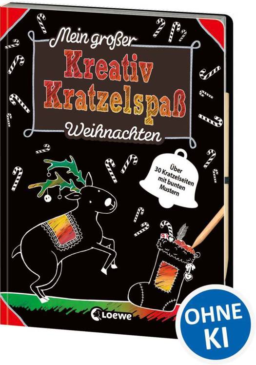 Mit nur wenigen Strichen entstehen auf den schwarzen Seiten magische Bilder, denn darunter verbergen sich die unterschiedlichsten Muster und Farben. Lass deiner Kreativität freien Lauf und kratzle lustige Schneemänner, einen Nikolausstiefel voller Süßigkeiten oder deinen größten Weihnachtswunsch.