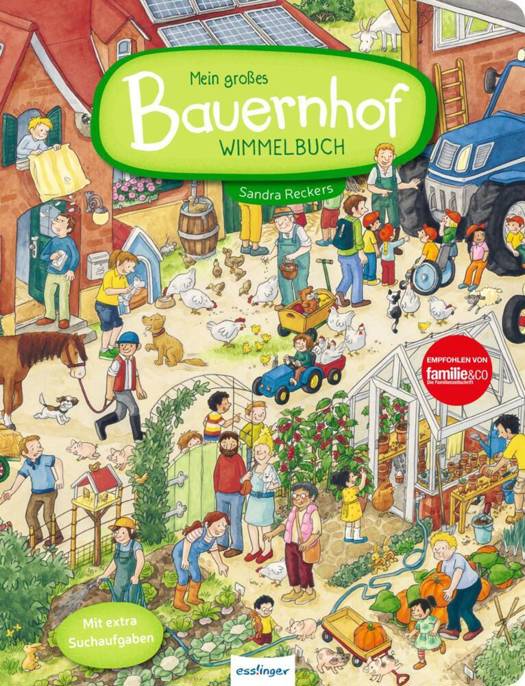 Matteo und Mathilda machen mit Papa und Oma Ferien auf einem großen Bauernhof, dort gibt es so viel zu sehen: Kühe, Schafe, Hühner, Schweine, Ziegen, Pferde, sogar Highland Rinder und Alpakas, und die süßen Kaninchen darf man streicheln. Mit Traktor und Mähdrescher wird Getreide geerntet, die Bäuerin baut Bio-Gemüse für den Hofladen an, der Hufschmied beschlägt das Zugpferd, die Tierärztin untersucht die neugeborenen Ferkelchen, es gibt Ponyreiten und ein Hoffest ... Hier ist jeder Tag ein Erlebnis!