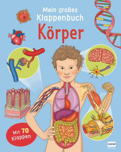 Erfahre faszinierende Informationen über den menschlichen Körper. Unter den 70 Klappen verbergen sich spannende Details. Detaillierte Illustrationen laden zum Entdecken ein.